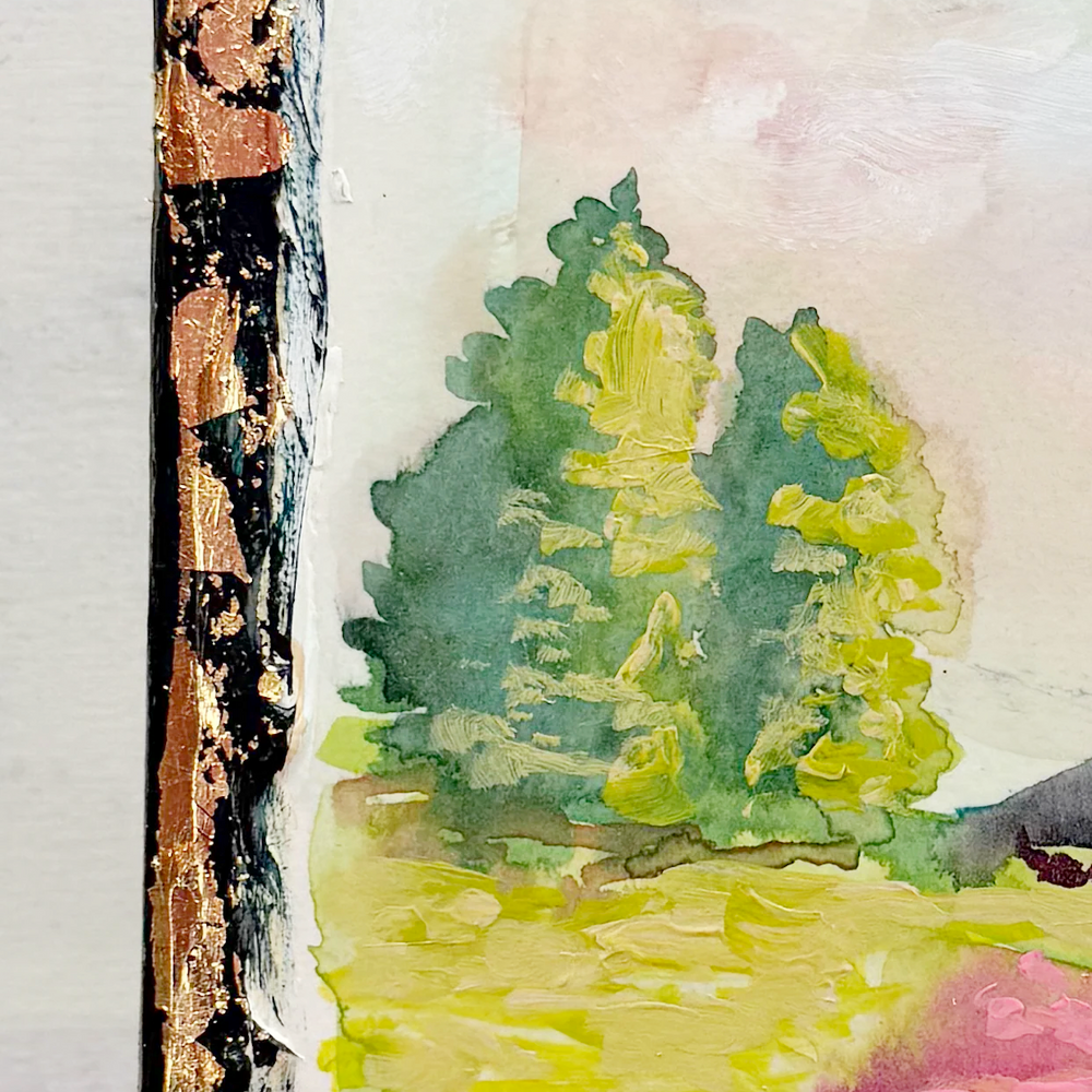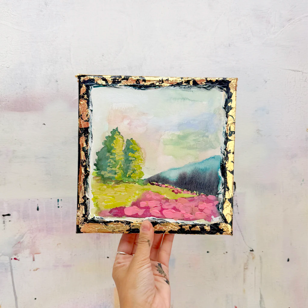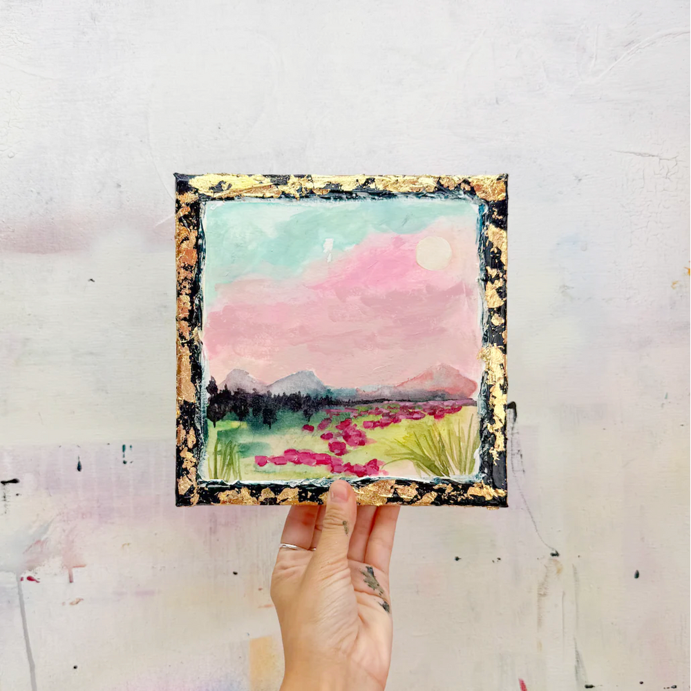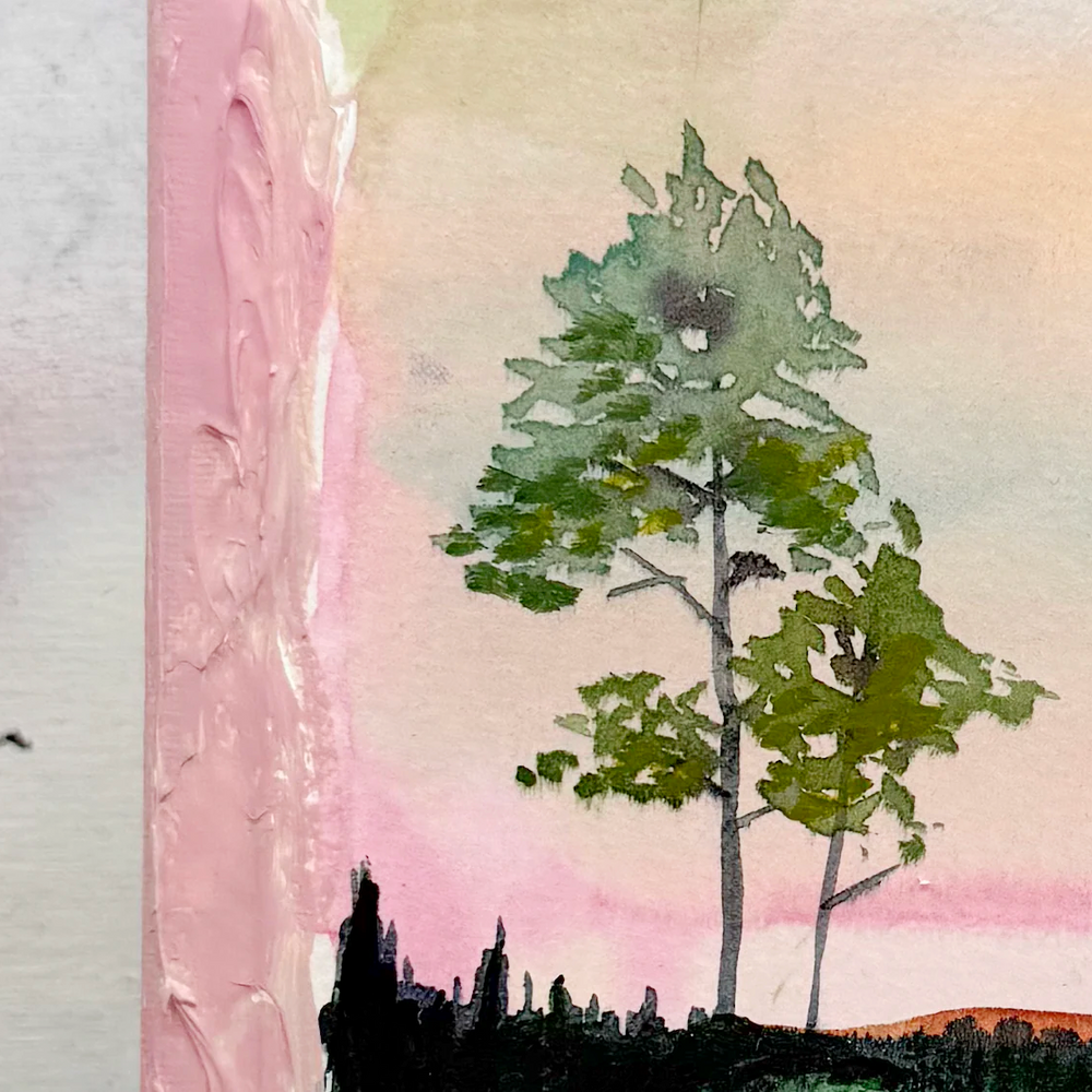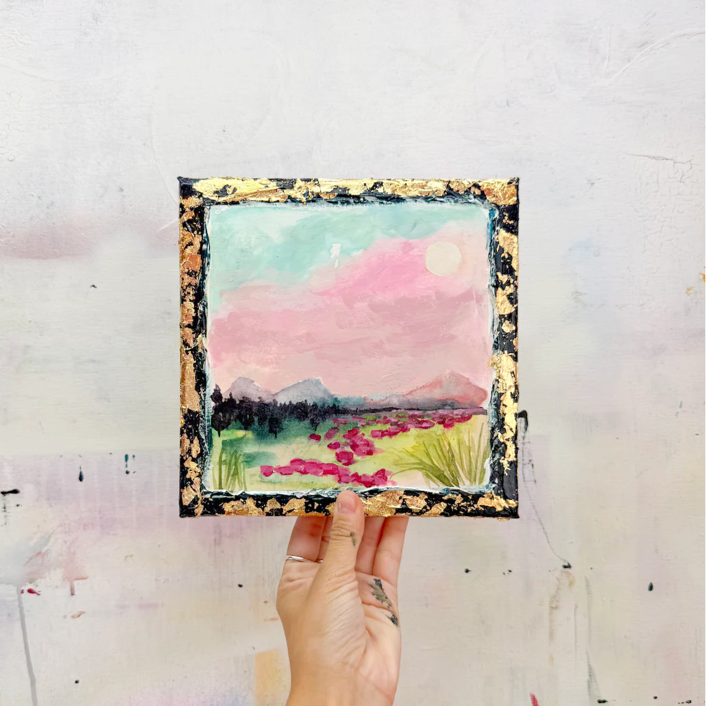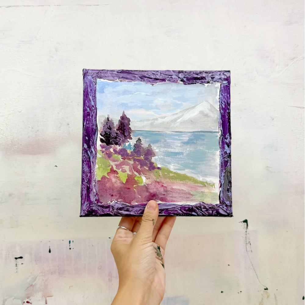 This series is titled Woven Wonderlands because of the uncommon layering of watercolors and acrylics. Inspired by my road trips and travels, each landscape is a representation of my love for exploration of this beautiful world and the supplies I use to recreate it!