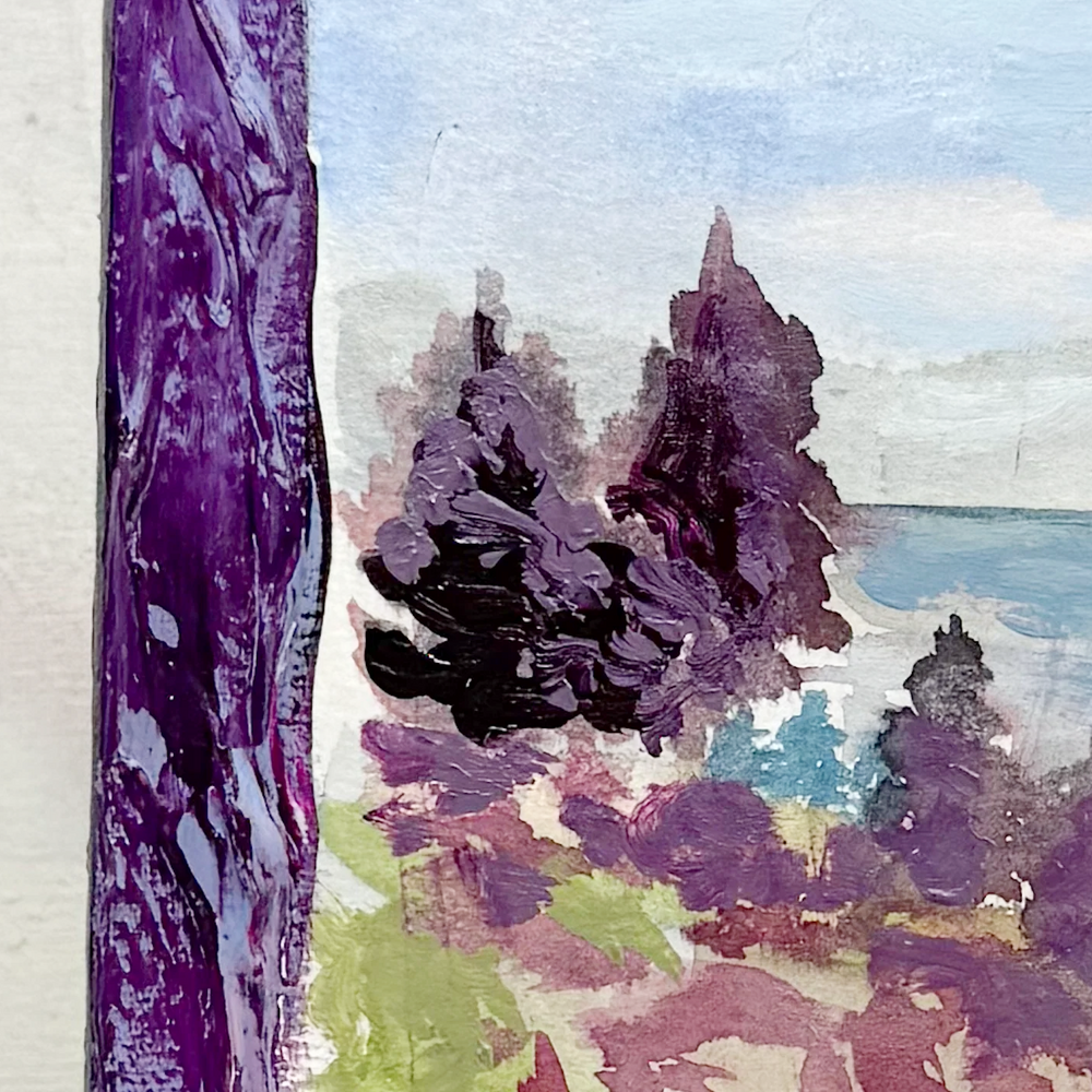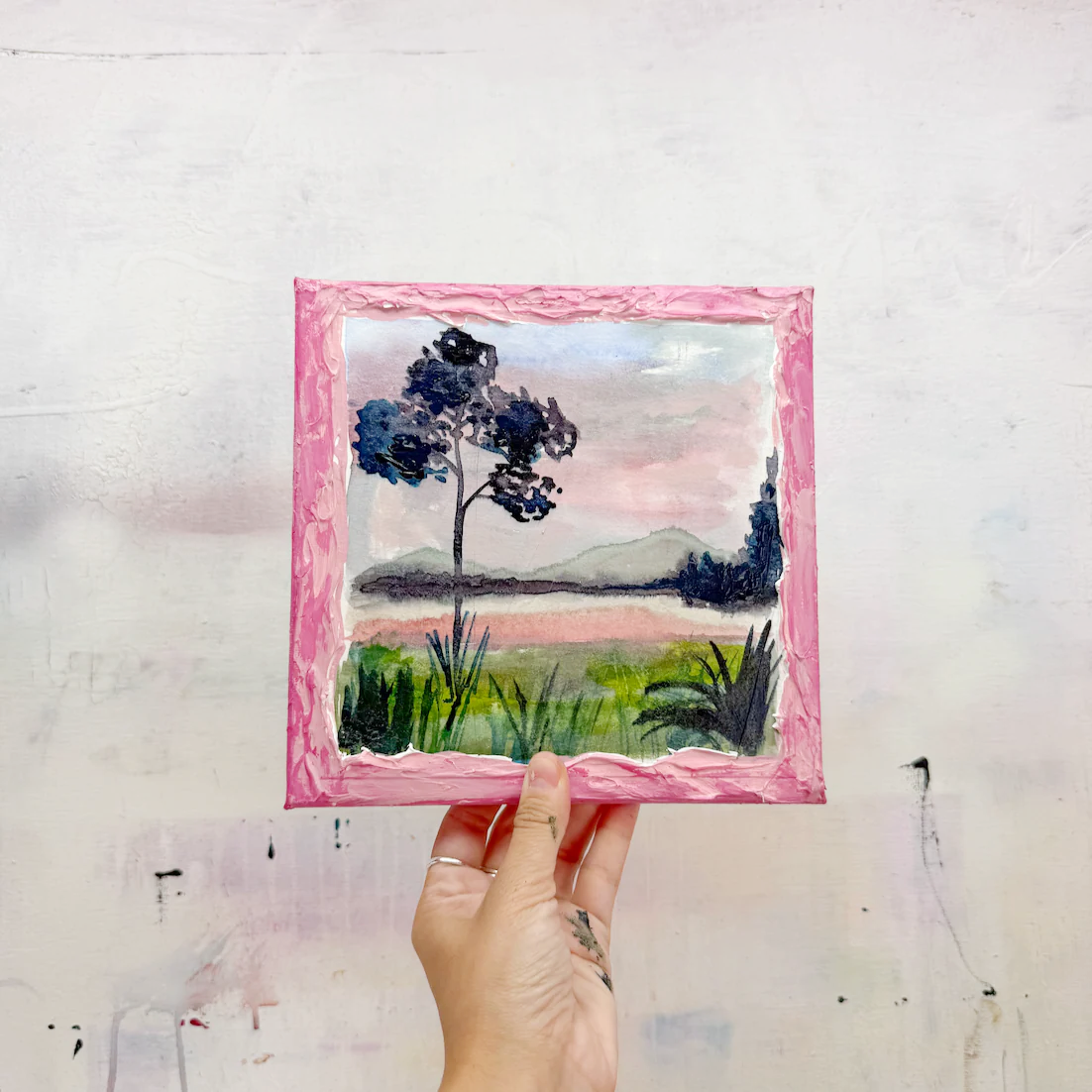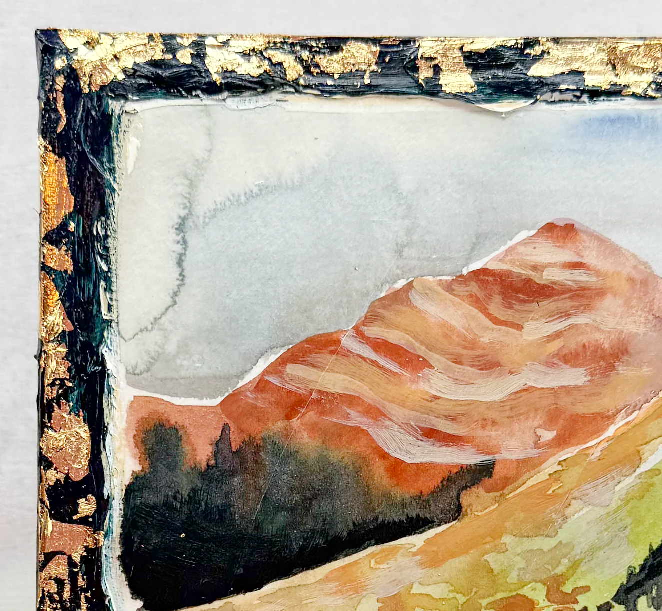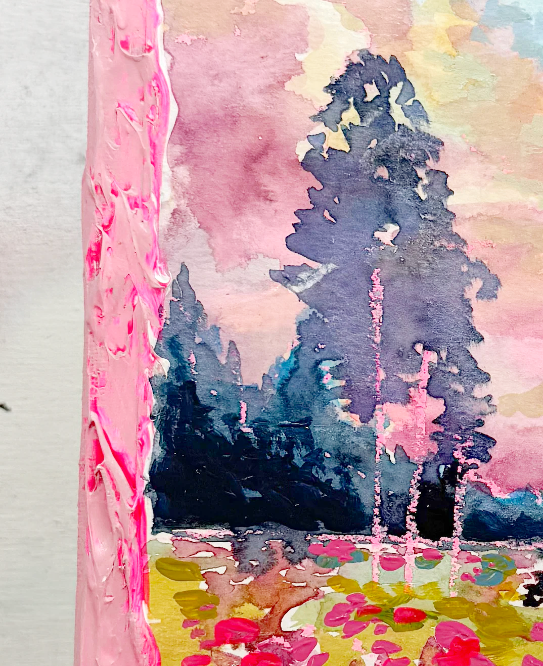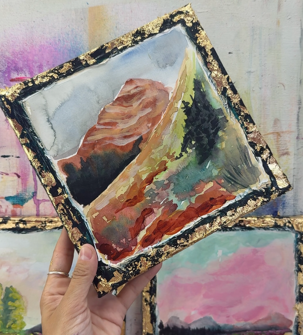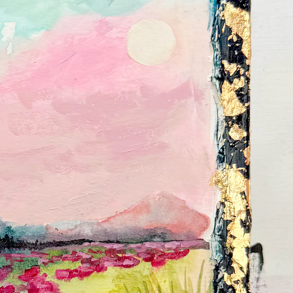 This series is titled Woven Wonderlands because of the uncommon layering of watercolors and acrylics. Inspired by my road trips and travels, each landscape is a representation of my love for exploration of this beautiful world and the supplies I use to recreate it!