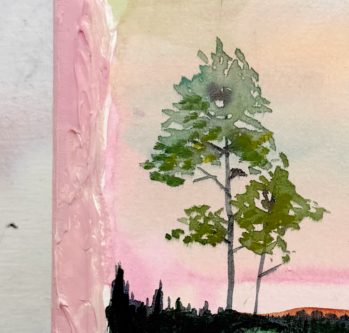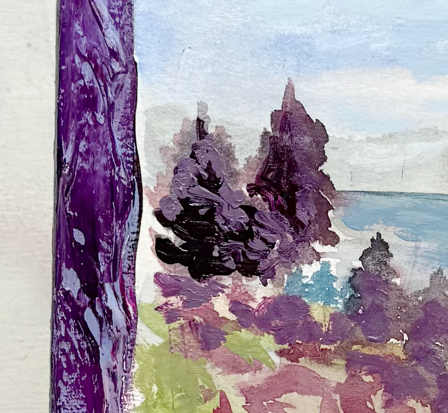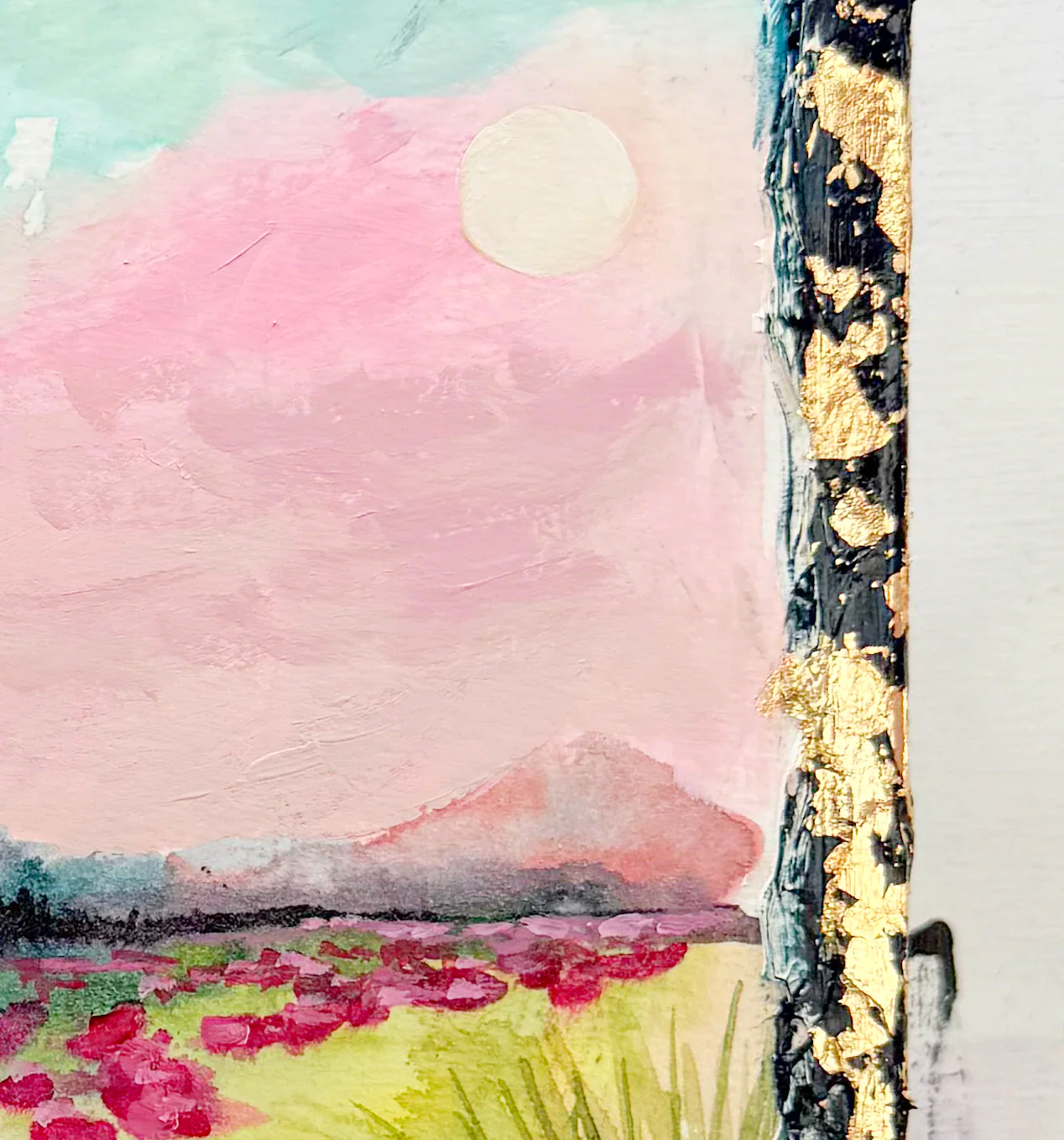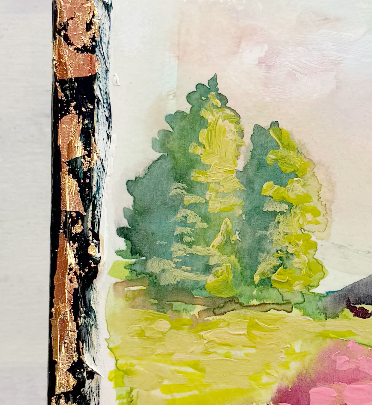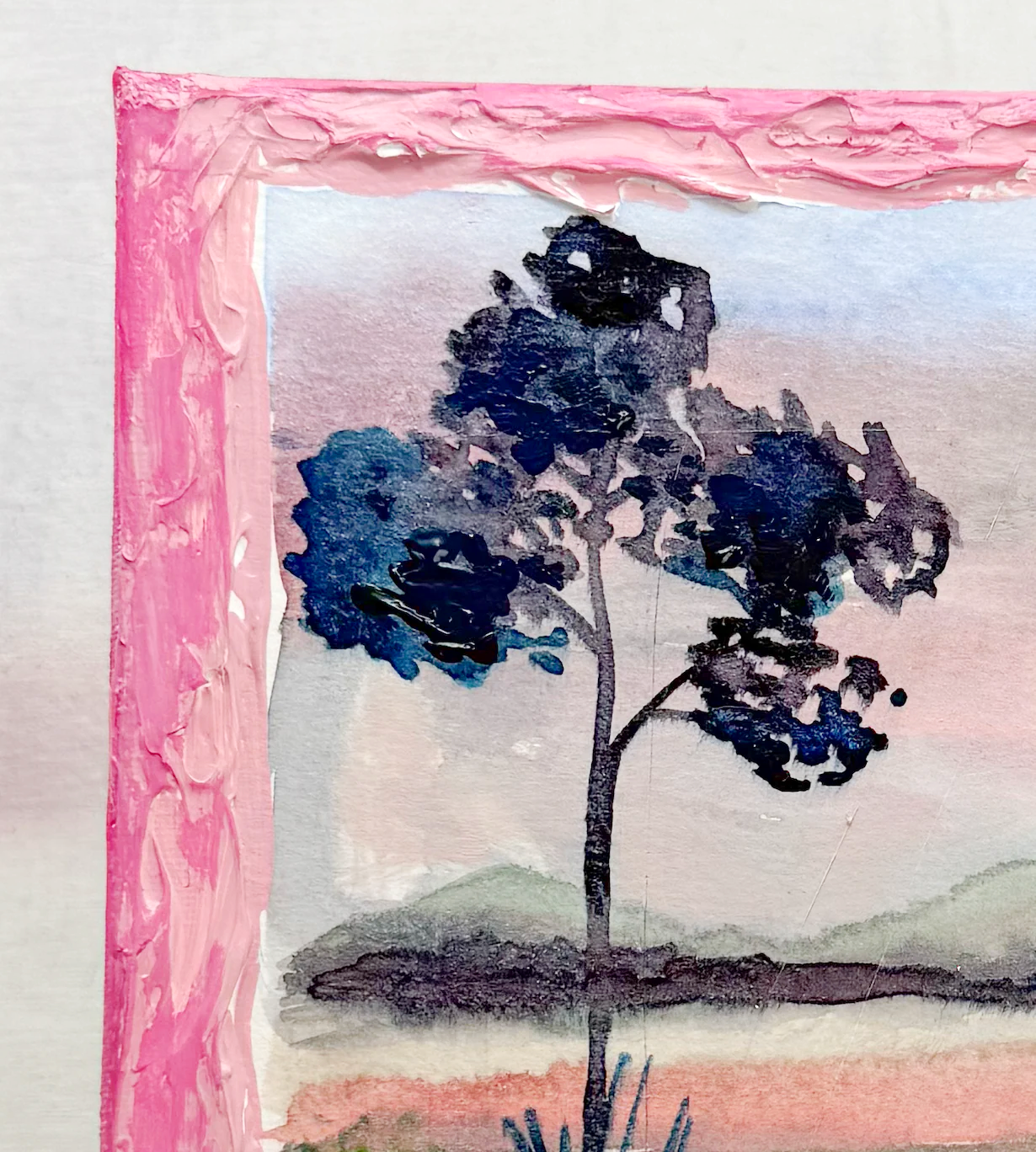 This series is titled Woven Wonderlands because of the uncommon layering of watercolors and acrylics. Inspired by my road trips and travels, each landscape is a representation of my love for exploration of this beautiful world and the supplies I use to recreate it!