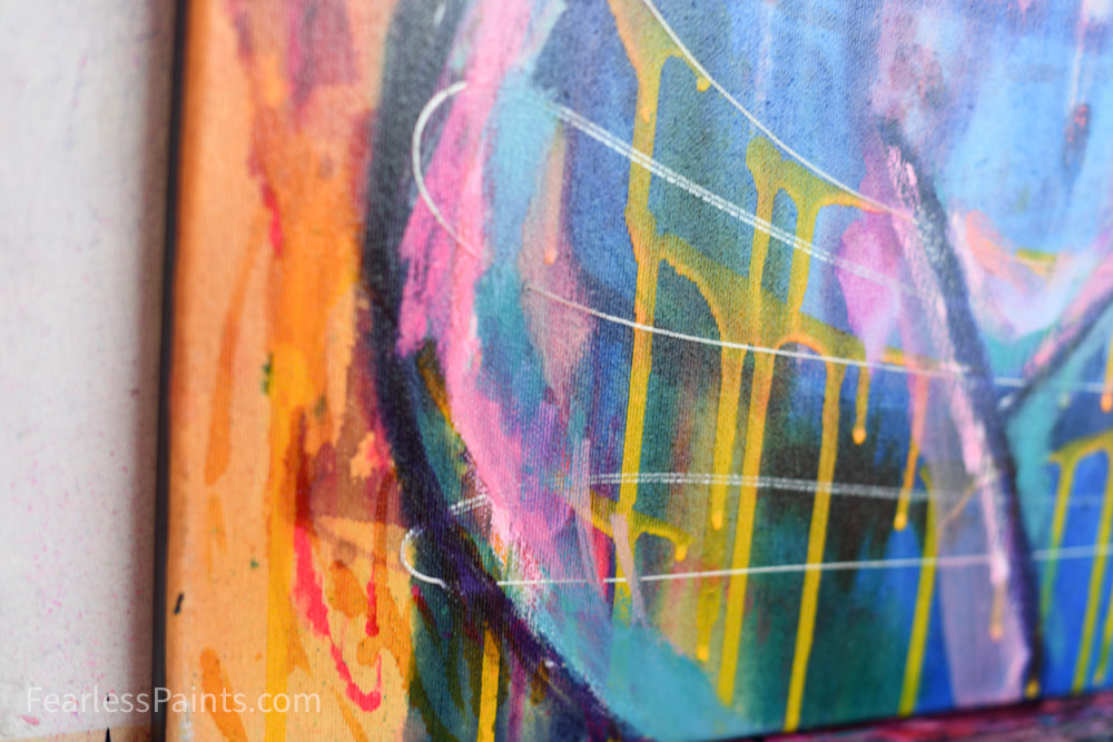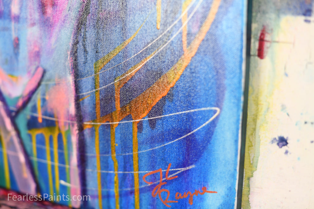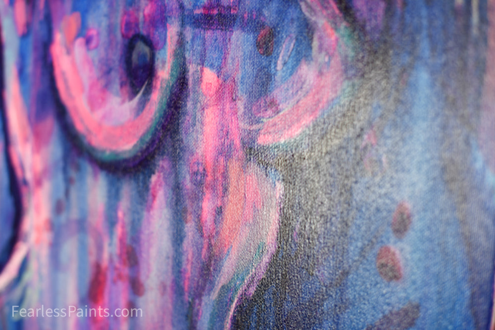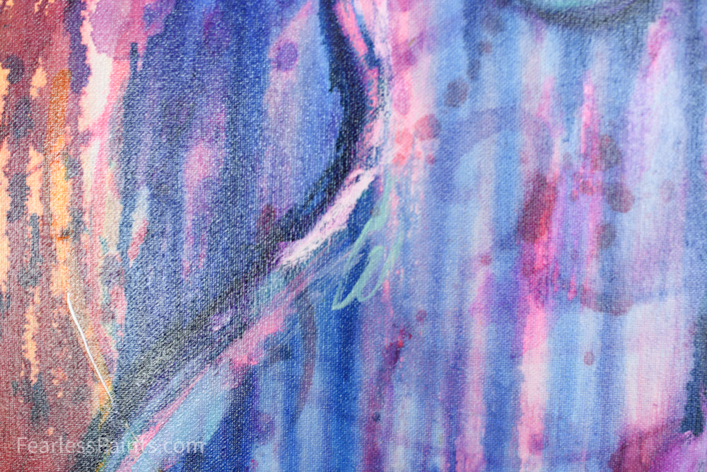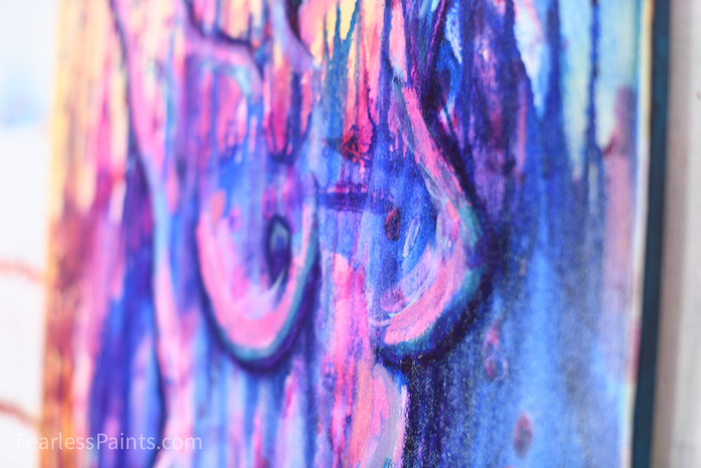 Goddess Power is one of four in a series titled Goddess in Motion. The only series created without a single photograph reference, I pulled these forms out of my own imagination. Free and flowing. This series experiments with layering different media to create depth through the vulnerability of the naked body without shying away from it.